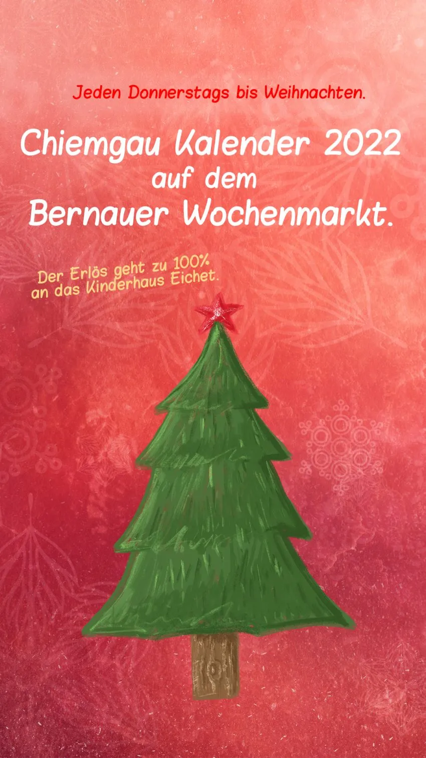 Die Donnerstage vor Weihnachten gibt es den Kalender auch auf dem Wochenmarkt in Bernau am Chiemsee zu kaufen. Der Erlös aus dem Verkauf geht zu 100% direkt an das Kinderhaus Eichet.
