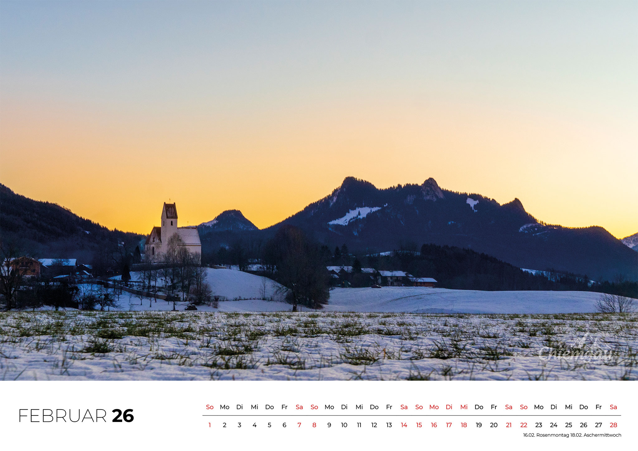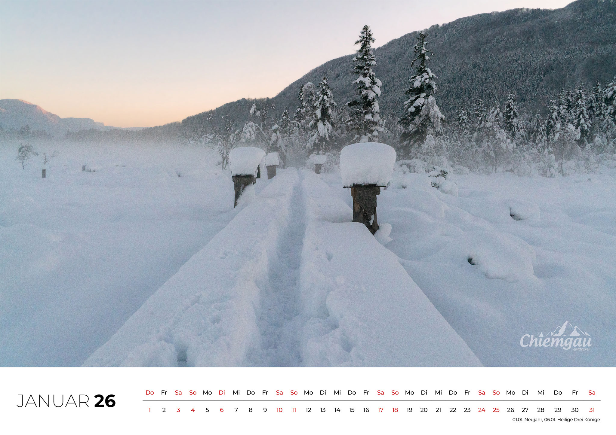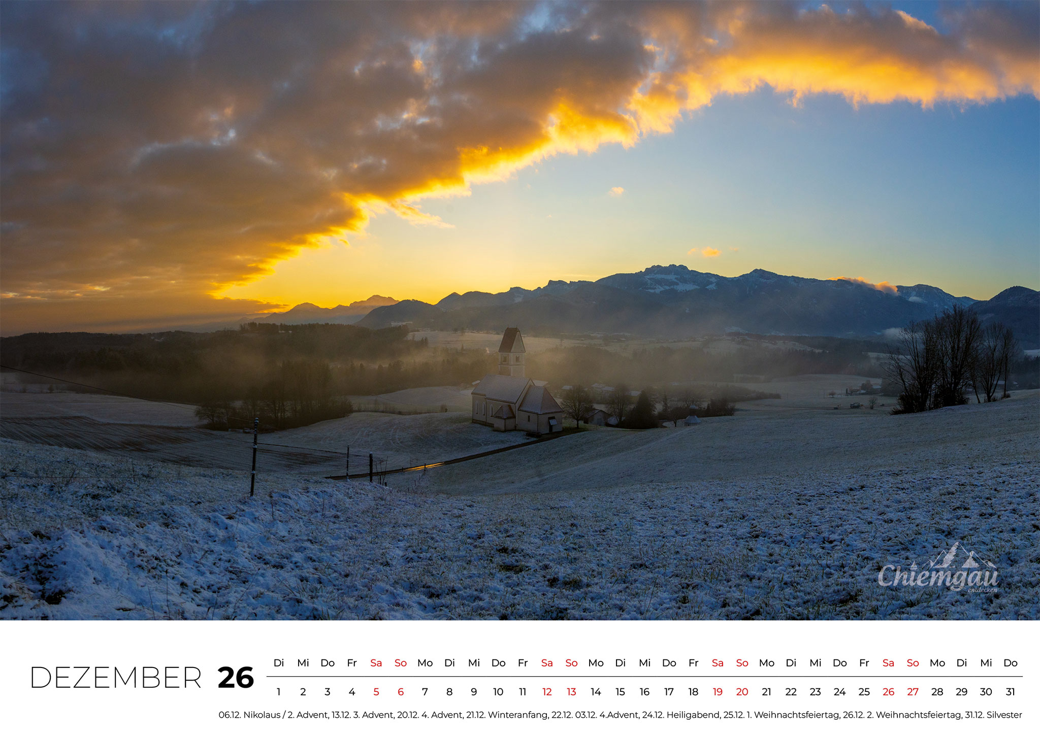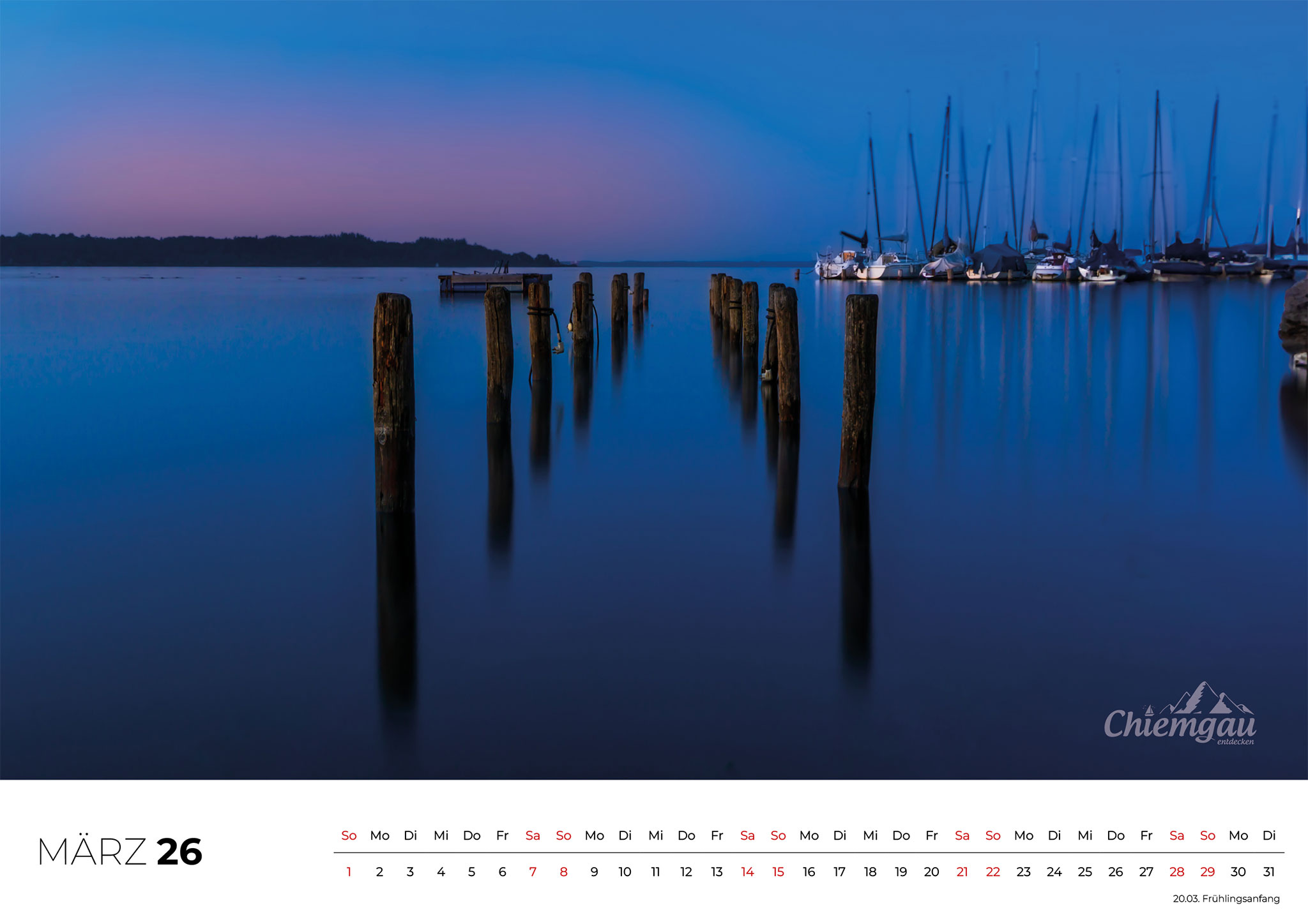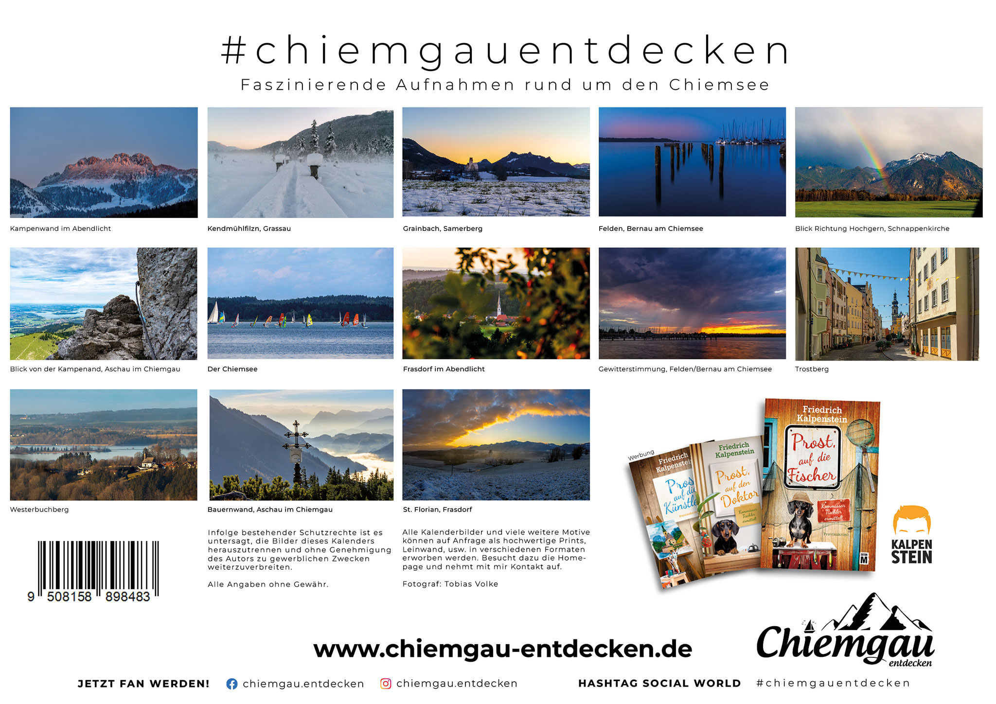Tauche ein in die faszinierende Welt des Chiemgaus mit meinem Chiemgau Kalender für das Jahr 2026! Mit diesem Kalender versuche ich Euch die Schönheit der Region – Monat für Monat. Jede Seite ist mit atemberaubenden Bildern der malerischen Landschaften, glitzernden Seen und majestätischen Berge geschmückt, die den Chiemgau so einzigartig machen.
